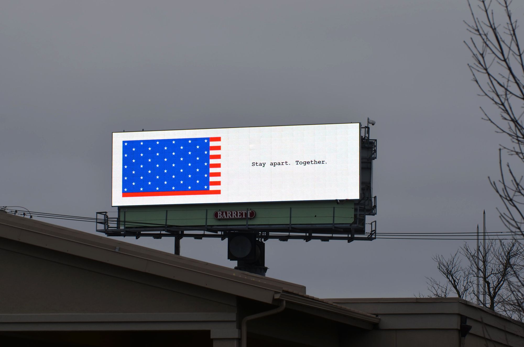 “Outdoor and social ads depict a new version of the American Flag—all 50 stars are now spaced further apart. Copy reads, ‘Stay apart. Together.’